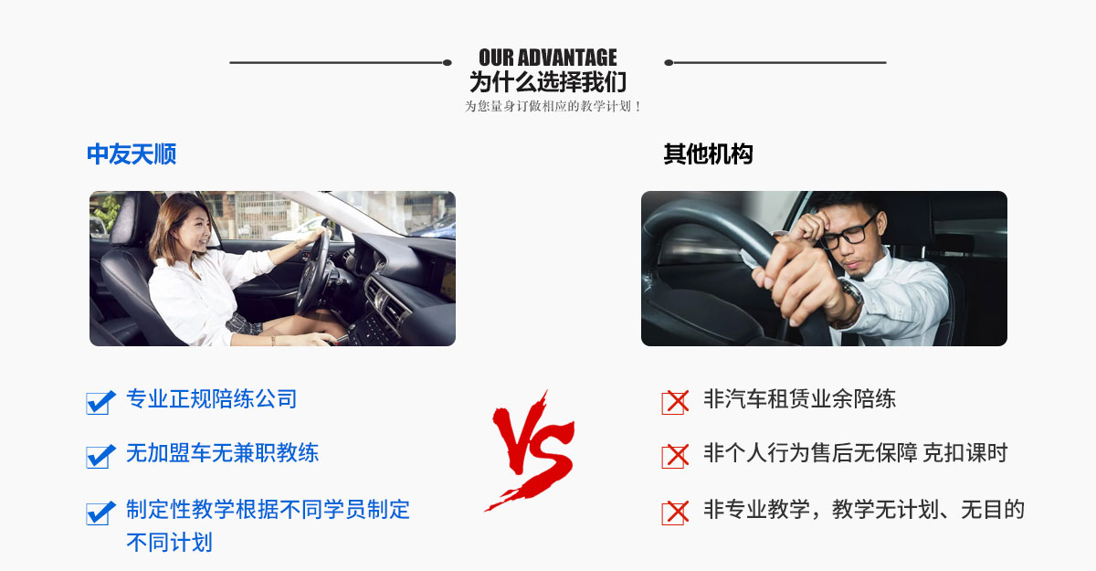 北京中友天順汽車(chē)陪練隸屬于北京中友天順汽車(chē)技術(shù)有限公司一家專(zhuān)業(yè)的汽車(chē)陪練公司,公司秉承宗旨:為已有駕駛本而不能夠在實(shí)際道路上安全行駛的駕駛員而服務(wù)的,我們大力宣揚(yáng)道路安全駕駛理念,深度提高駕駛員駕駛技術(shù),為首都駕駛員的安全駕駛技術(shù)和安全駕駛意識(shí)服務(wù).從而減少首都道路的涌堵,減少首都交通事故的發(fā)生。針對(duì)不同開(kāi)車(chē)基礎(chǔ)的學(xué)員制定各種培訓(xùn)方案!誠(chéng)信、專(zhuān)業(yè)、周到!北京中友天順汽車(chē)陪練公司全部為部隊(duì)轉(zhuǎn)業(yè)軍人,駕齡都在十五年以上,